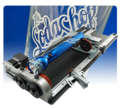 The Rim-Style rotary attachment adds the ability to engrave bottles, glasses, flashlights, or any other cylindrical item. The Fusion Maker rotary attachment is as easy to setup as placing your product on the rotary, raising or lowering the scissor lift to level the engraving area, and printing to the laser.